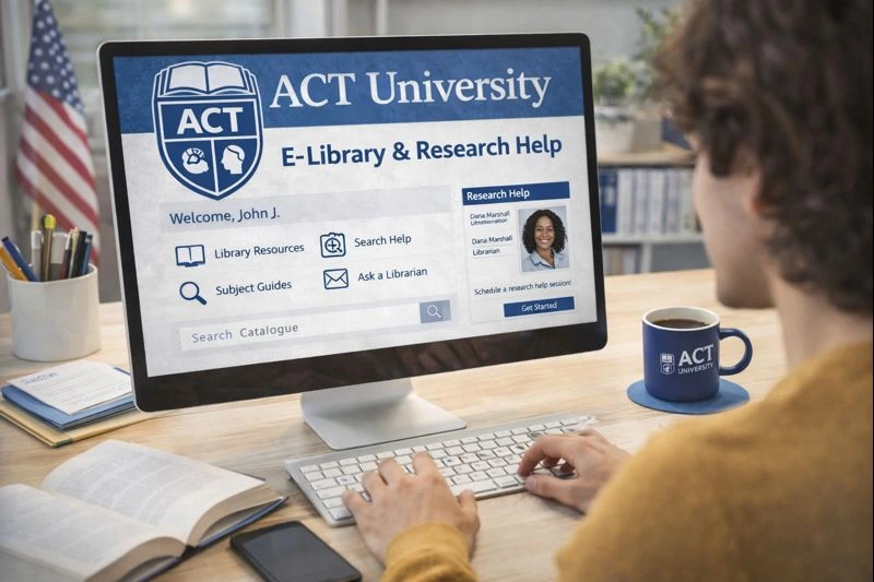 Support at ACT University is built on clear timelines, practical help, and respectful service. You have access to advising and success coaching, self-service writing and study resources, accessibility services with a confidential intake, e-library guidance, and 24/7 technology support. Response-time standards keep communication predictable across 16-week courses.